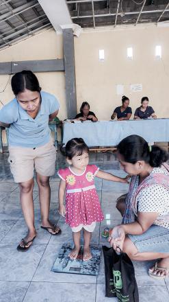 -Penimbangan & Pengukuran : Balita ditimbang berat badannya, diukur tinggi/panjang badan, serta lingkar kepala untuk memantau umbuh kembangnya