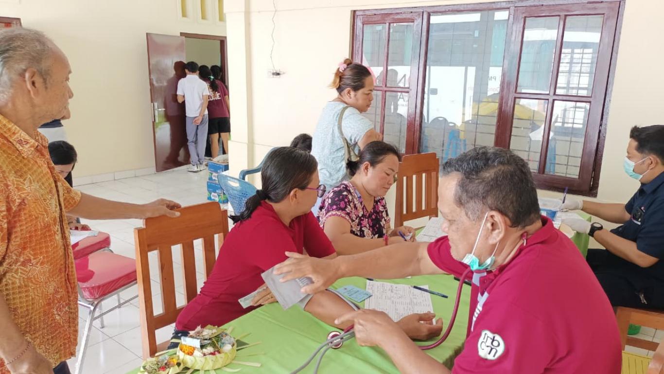 Setelah mengisi formulir, mereka melakukan pemeriksaan Tensi dan Hb oleh Tim Medis.